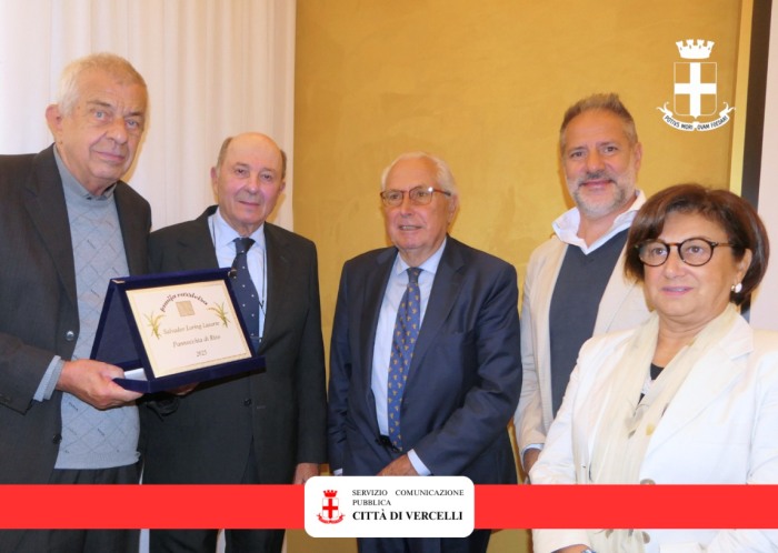 Questa mattina, giovedì 25 settembre 2025, la Famija Varsleisa ha consegnato la “Pannocchia di Riso d’Oro” 2025 a Salvador Loring Lasarte, amministratore unico di Mundi Riso, per il contributo determinante allo sviluppo e all’innovazione della filiera risicola italiana e per il costante impegno nella promozione del territorio vercellese a livello internazionale.